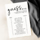 Kruid je vrijgezellenfeest op met dit chique, minimalistische Guess Who-spel! Breng een moderne draai aan het klassieke spel met dit eenvoudig elegante zwart-wit ontwerp. Deze moderne Guess Who spel is de perfecte activiteit om de bruid-to-be en haar gasten mengen en lachen. Met zijn strakke, minimalistische stijl voegt het een stijlvolle touch toe aan elk vrijgezellenfeest. Pas de speelkaarten aan met leuke vragen over het paar om een gesprek en gelach aan te wakkeren.