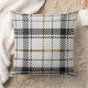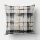 Een warm, uitnodigend ruitpatroon met elkaar kruisende lijnen in zwart, wit en verbrande oranje. Deze kussen combineert rustieke charme met moderne structuur, waardoor het perfect is voor gezellige woonkamers, herfstdecoratie, hutten of elke ruimte die een klassieke tartan-uitstraling met een moderne twist waardeert.
