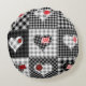 Naadloos achtergrondpatroon. Zal eindeloos tegels. Zwart-witte patchwork met hartjes en rode vlekken. Patchwork harten met rode patches voor een liefdevol decor. Geef uiting aan je genegenheid creatief. Zwart-wit patchwork harten patroon. liefde, patroon, achtergrond, patchwork, hart, naadloos, illustratie, decor, quilt, vierkant, textuur, draad, naad, curve, quilten, darning, herhaling, herhalen, valentin, continuïteit