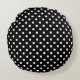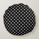 Zwart en wit puntpatroon rond werpen kussen. Kute print home decor voor slaapkamer of sofa. achtergrondkleur.