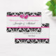 Dit zwart-wit damask bruiloft gunst cadeau label heeft een paar PRINTED gevoegde harten met roze glitter en juwelen erop die overeenkomt met de bruiloft uitnodiging hieronder getoond. Als er andere overeenkomende objecten zijn die u nodig hebt, kunt u een e-mail sturen naar owlstudio@gmail.com.
