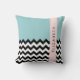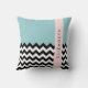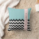 Zwart-wit Zigzag, Chevron, Blauw, Jouw naam Kussen