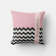 Zwart-wit Zigzag, Chevron, Roze, Jouw naam Kussen