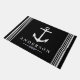 Ankers weg! Maak uw gasten met deze verklaring die wit nautisch anker doormat maken.. De achtergrond is zwart met gepersonaliseerde familienaam tekst in wit. Dit portret is elegant, chic, en zou een grote indruk maken op je huisgasten omdat ze welkom zijn bij je thuis!