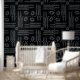 Eenvoudige en elegante, witte cirkels en lijnen op zwarte achtergrond
