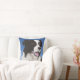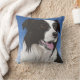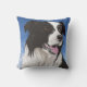 Deze mooie gooiende kussen is een van een paar en kenmerkt mijn driekwart portret van een zwarte en witte collie, met bruine ogen tegen een blauwe hemel. Leuk om de sofa op te helderen.
