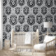 Dit luxe behang is voorzien van een set zwart & wit leeuwenkoppen.