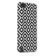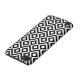 Dit stijlvolle zwarte en witte geometrische patroon is een origineel siervormig ontwerp. Witte kwade mazen draaien rond zwarte diamanten die witte diamanten bevatten. De zwarte zigzags verstrekken subtiele scheiding tussen de het winden wegen.