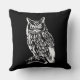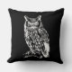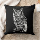 Klassieke zwarte en witte accentuskussen met gedetailleerde Owl-illustratie.