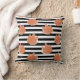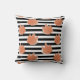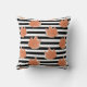 Zwart-witte strepen met Oranje Waterverf Leaf Kussen