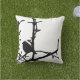 Dit eigentijdse buitenkussen toont een zwart-wit abstract silhouet Donkerogige Junco (Junco hyemalis) die op een kale tak hoog in een boom zit. Deze vogel is eigenlijk een soort kleine, grijze en witte mus.