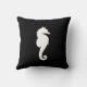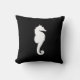 Witte vorm van een zeepaardje op een zwarte achtergrond.