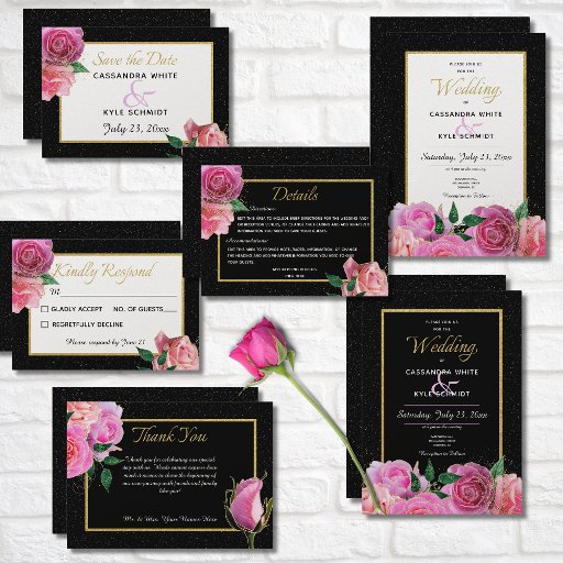 Black Glitter & Pink Roses Suite CardsOntworpen door Kathe Santillo
