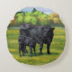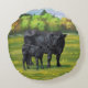 Zwarte Angus-Koe en Cute Calf in zomerperiode Rond Kussen