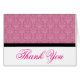 Roze en witte damast elegante dank je briefjes met een zwarte accentrand. Je kunt ook je unieke monogram aan de binnenkant toevoegen. Het is geweldig voor alle gelegenheden, van bruiloften tot zakelijke dank je kaarten.