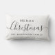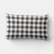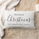 Op maat ontworpen decoratief lumbaal kussen met "Merry Christmas" modern typografie ontwerp met uw familienaam op feestelijke zwart-witte buffel check patroon.