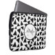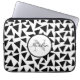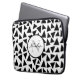 Zwarte driehoeken Gepersonaliseerde laptophoes. Dit ontwerp heeft zwarte geometrische driehoeken op witte achtergrond. Personaliseer met jouw naam en initialen.
