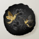 Zwarte en gouden sieraden kolibries op grijze achtergrond versierd met planten. Sieraden vogels. Gouden vogel. Gouden vogel.