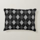 Dit rechthoekige accentkussen heeft een zwart en grijs artyle patroon.