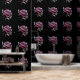 Zwart en Roze Gotische Bloemen Wallpaper Een behang met een roze bloem in gotische stijl op een zwarte achtergrond.