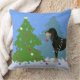 Zwarte en Tan Coonhound die kerstbomen decorteren Kussen