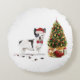 Zwarte en witte kersthond rond kussen