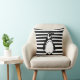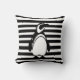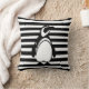 Vet ontwerp van een pinguïn op een zwarte en witte stripey achtergrond. Cushions en kussens.