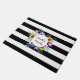 Prachtige doormat met florale waterverf op zwarte en witte gestreepte achtergrond. Pas de tekst aan door uit vele prachtige doopvonten te kiezen.