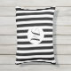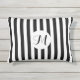 Creëer uw eigen zwarte en witte strepen met aanpasbaar monogram door kussen. Verticale zwarte strepen met witte cirkel en aanpasbaar monogram. Stijlvol en veelzijdig.