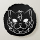 Zwarte en witte tribale kat rond kussen