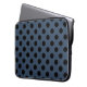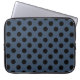 Zwarte haarpunten op grijsblauw laptop sleeve