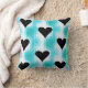 Dit grafische ontwerp, schijnt te gloeien, met zwarte harten, op wit, vierkanten-getoond op een, abstract, dambord, patroon van, turquoise, met blauw in de schaduw gesteld.