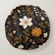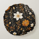 Zwarte Herfst Boho Gouden Bloemenpatroon Rond Kussen