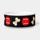 Een hondenkom met handgetekende afbeeldingen van botten en ballen. De achtergrond, afbeeldingen en tekst kunnen worden gepersonaliseerd. Originele kunst van W.B.