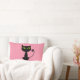 Grappig Black Kitten Cartoon met roze achtergrond.