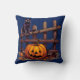 Zwarte kat op hek Jack-O' lantaarn Halloween Kussen