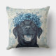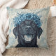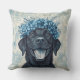 Zwarte Labrador Retriever Blauwe Bloemen Kussen