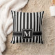 Zwarte Moderne streep met monogram Kussen