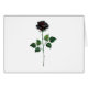 Symbolische, artistiek getekende zwarte roos met groene stengels en bladeren op witte achtergrond. Zwarte roos.