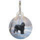 Zwarte Russische terriër laat het sneeuwen Kerstmi Huisdierpenning