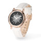 Unieke muziek-thema horloges voor musici en muziekliefhebbers voor de winterse feestdagen. Smeltende witte g-clefs vormen een sneeuwvlok gemaakt van drievoudige clef notes. Bewerken om de klassieke zwarte achtergrond- en middencirkelrand te wijzigen in elke gewenste kleur. ♡ Idyllfire
