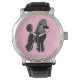 Zwarte standaard poedel met roze horloge