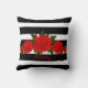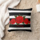 Moderne zwart-wit geometrische strepen en felrode rozen. Optioneel monogram