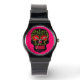 Zwarte suiker schedel horloge. Achtergrondkleur, enz. kan worden aangepast.