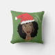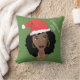 Zwarte vrouw, rode kerstmuts, huidig jaar, groen kussen