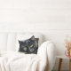 Close-up van een zwarte waterverf met gele ogen op wit.