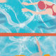 Een leuke en leuke handgetekende zwemronde in een zwembadpatroon. Een geweldig ontwerp voor kinderen slaapkamer inrichting, kinderen verjaardagsfeestjes inrichting en school accessoires. Een ideaal ontwerp voor iedereen die houdt van rondjes zwemmen, sporten, zwembaden en wateractiviteiten.