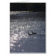 Twee ganzen zwemmen in de richting van zonlicht dat het meer afzwakt