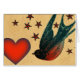 Retrostijl tattoo beelden van zwanen en sterren met een rood hart.